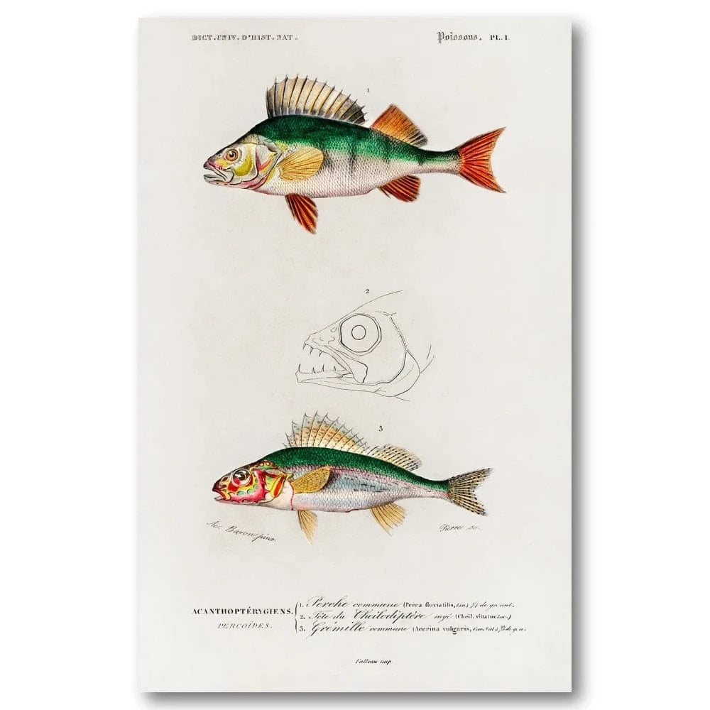 Our Vintage Fish Wall Art Prints collection showcases the intricate beauty and timeless allure of classic ichthyological illustrations. Each print features detailed depictions of various fish species, capturing the elegance and diversity of underwater life, perfect for adding a touch of aquatic charm to your home.